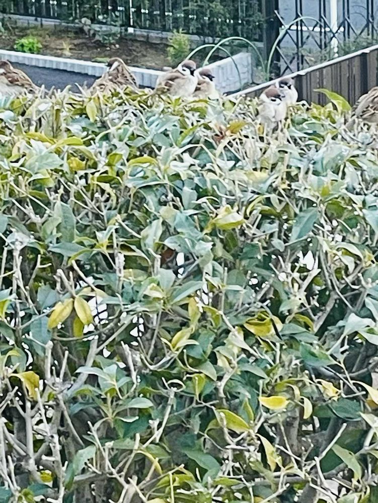2階の窓からしか見えないスズメ🐧のミーティング(金木犀の天辺です、画像悪くてすみません)