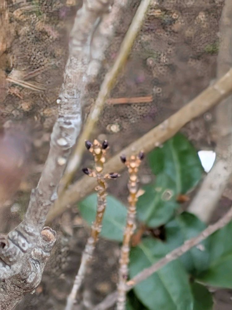 このレンギョウは細い枝で肉眼ではほぼ葉痕は見えませんでした。スマホ、最大の8倍で撮影、拡大せずそのままです。