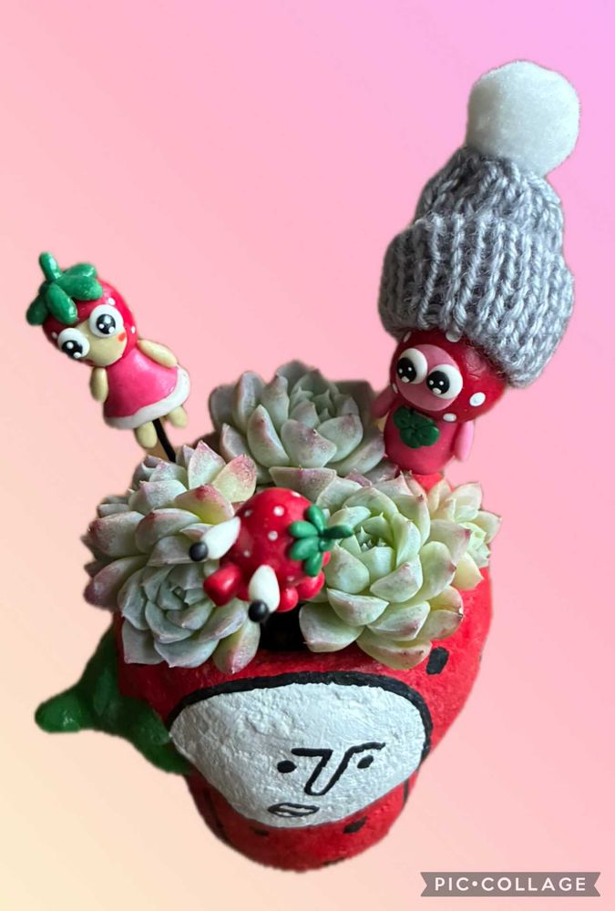 45さんに頂いたえつこさんのいちごマン鉢といちごちゃんのピック🍓💕😘