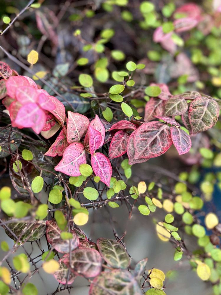 葉っぱが紅に色づいて、ワイヤープランツのネックレスのよう💎