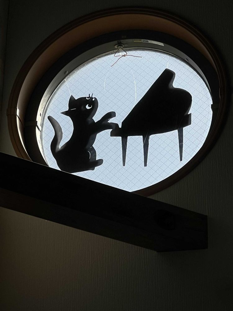 ぬいぐるみや窓の猫とピアノの飾りも素敵です