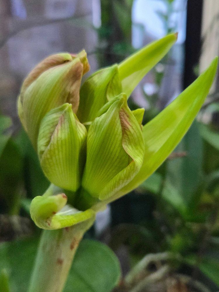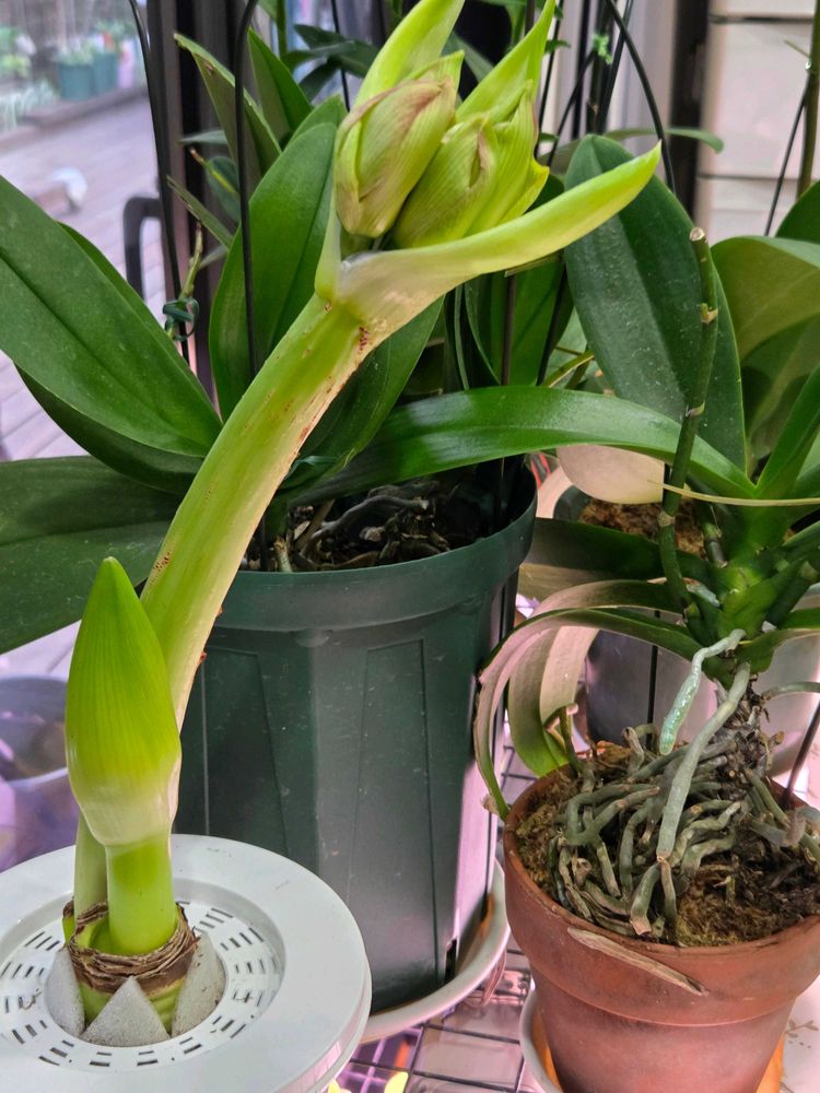 昨年末に半額セールでお迎えした ポット植えアマリリスが蕾を見せてくれました。