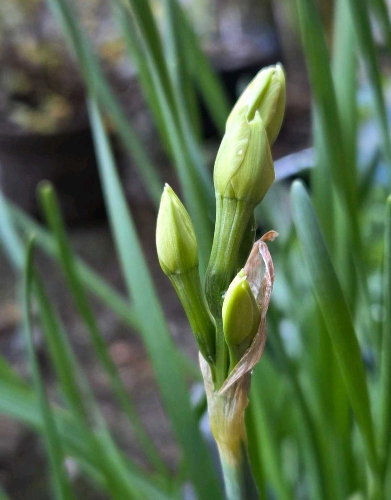 ➀12月の中旬に八重咲き水仙の蕾が出来始め、やっとここまで育ったのですが、先日の強風で折れてしまいました😣