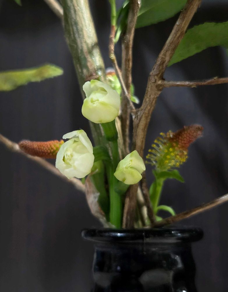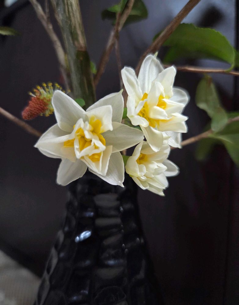 ②③昨日、お正月に生けたネコヤナギの花瓶にさした水仙が開き始めました❇️