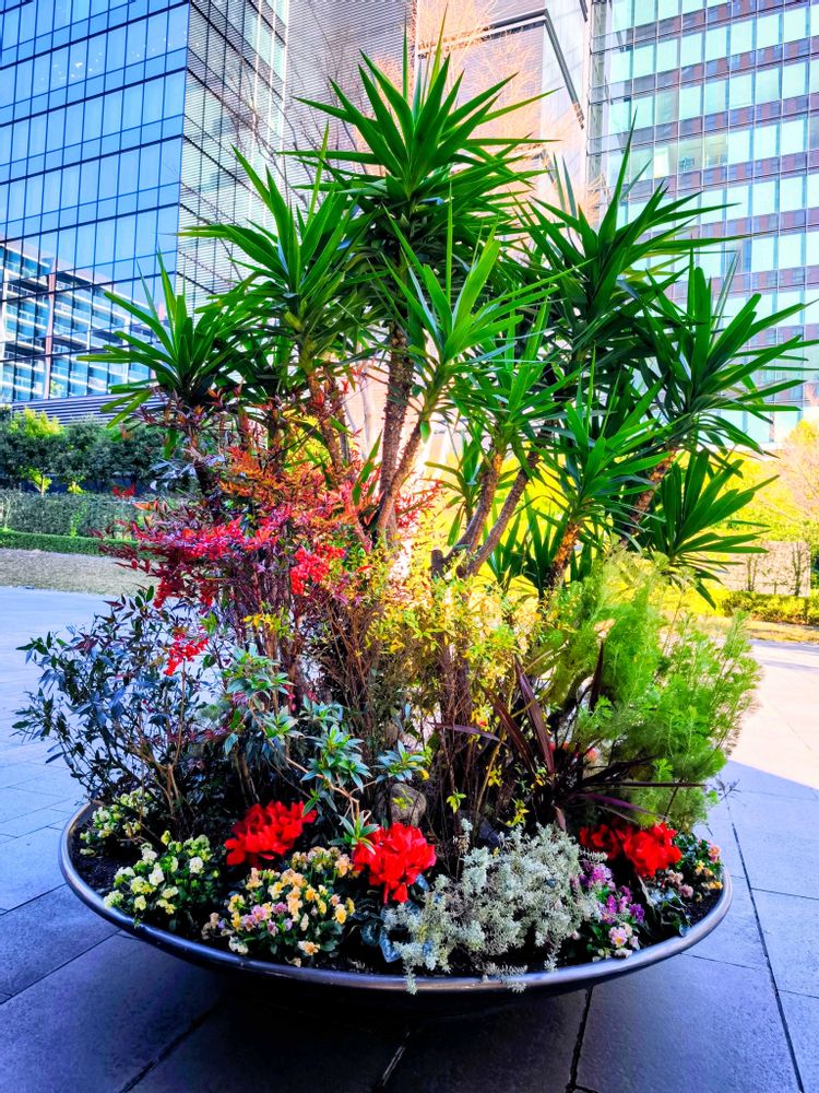 都内を歩いていたらオフィスビルのエントランスに大きな寄せ植えを発見👀