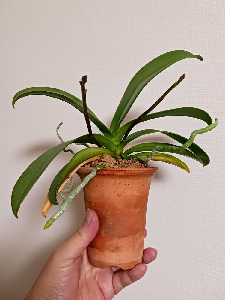 ②花後に新芽(子株)を切断手術して植え替え。こちらは現在の様子です。親株同様に花茎を2本出して目下蕾を作ってるところ。