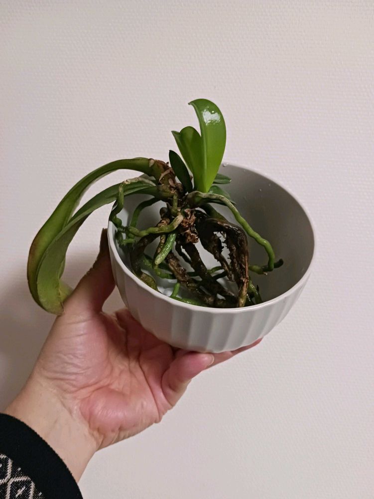 ③④こちらは親株の方。古い葉っぱ2枚と根っこ、それでもまだ生きてるから捨てちゃうのが可愛そうで、カップに入れて時々霧吹きしてました。
