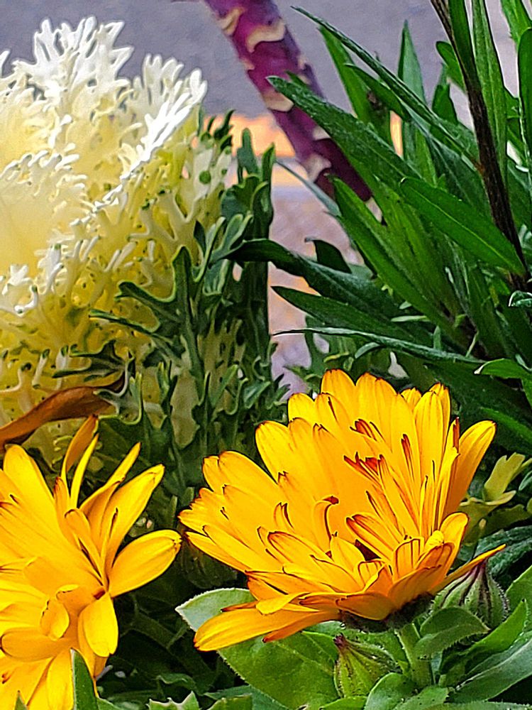 1枚目 ハボタン、2枚目 『今日のお花』キンセンカ、3枚目 バーベナ、4枚目 ロウバイ、5枚目 アネモネです🤗
