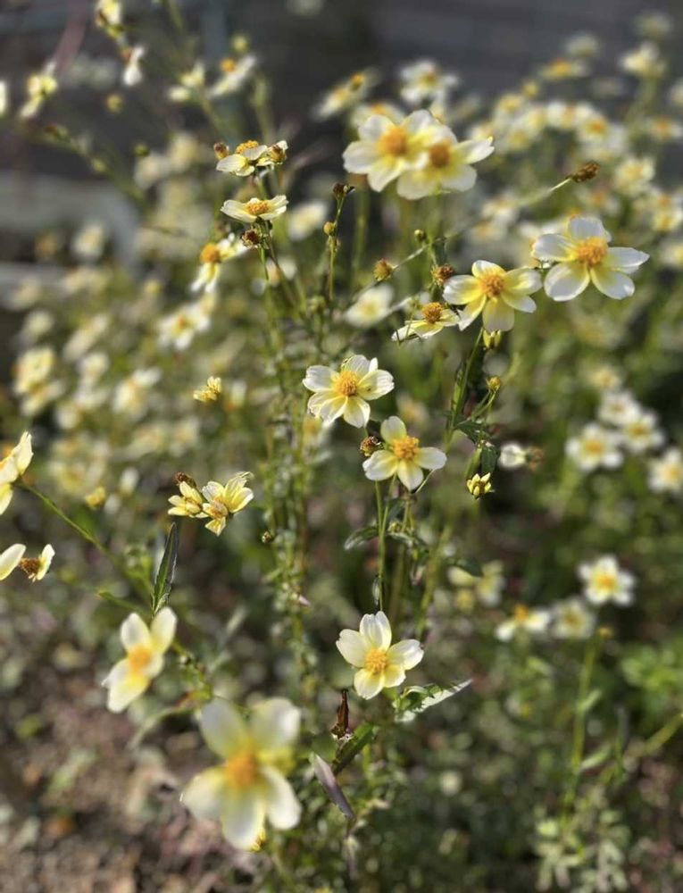 ウインターコスモスも倒れた所から横芽🌱を伸ばし 小さな丈で いっぱい咲いて楽しませてくれまた