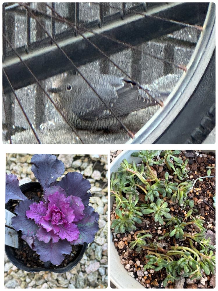 ヒヨドリね〜うちもかなり酷い事になってます(O_O)11月末から12月の出来事でした!葉牡丹持ってかれるとは思わなかったな💧小人の祭りはなくなって見つけたのずっとあとだからどうなるか?てもポットに挿したからなんとか根が出れば良いな!