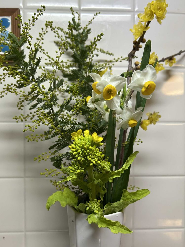 ミモザとロウバイと菜の花と水仙。