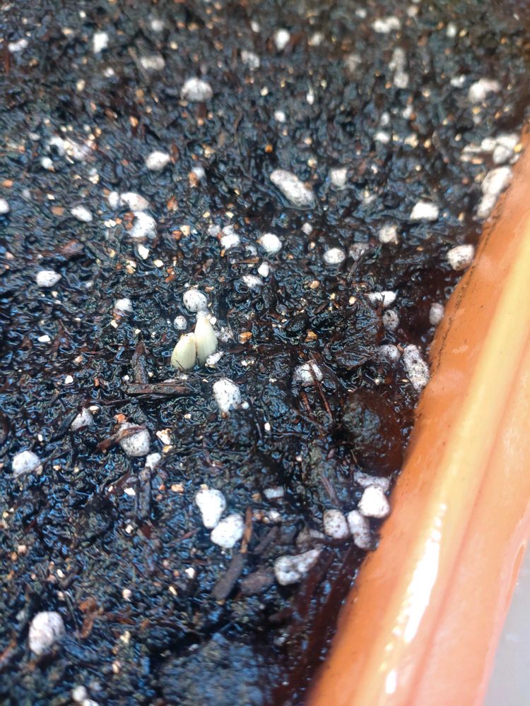 ベランダのクロッカス、ちょびっと芽🌱がでていました👀