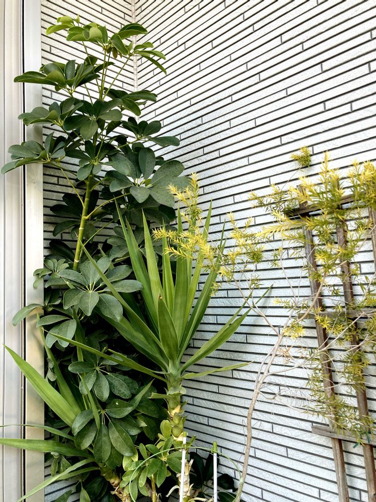 1️⃣7年目、年中外、葉っぱは痛むけど、シェフレラ(カポック)と隣のメラレウカと、越冬してます🤗