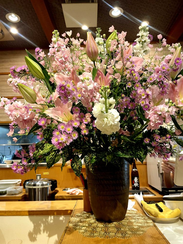 このゴージャスなお花💐がカウンターに