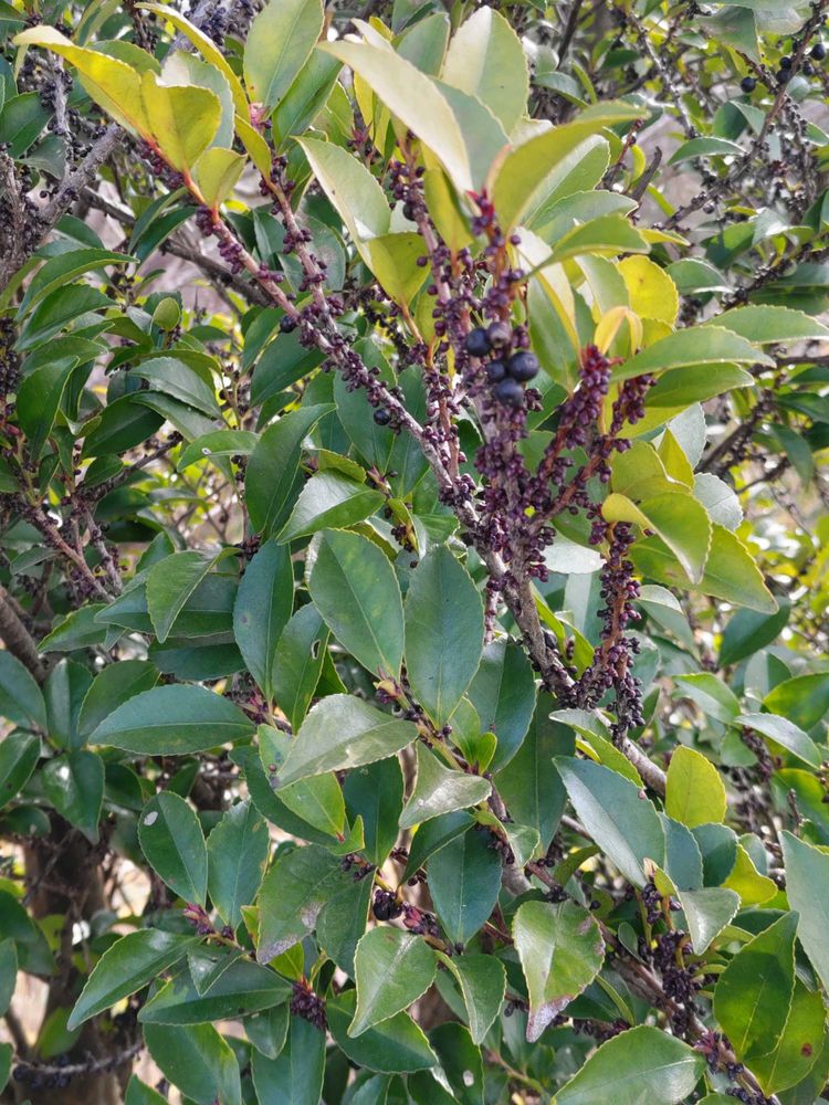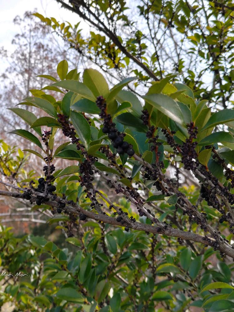 暗くてわかりにくいですが、ヒサカキの黒い実がなっていました
