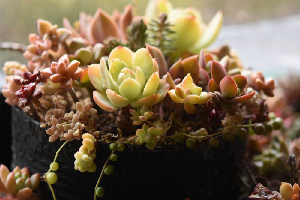 多肉植物を寄せ植えした鉢。