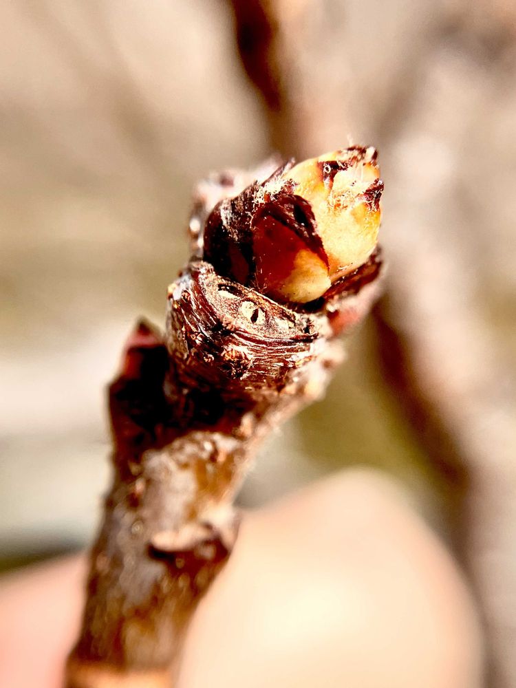 冬芽が少し動きだすと葉の部分の