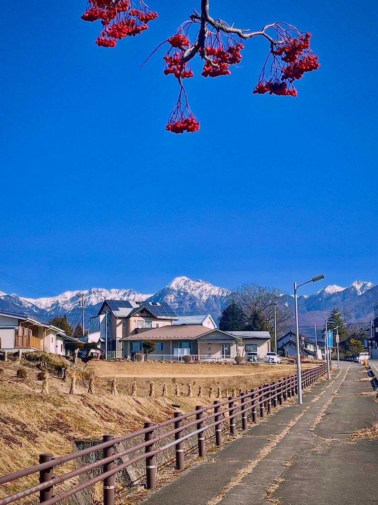 グリーンスナップ(植物写真)に投稿する以上、やはり植物を目立たせなければ…と思うのですが、それらしきものが見当たらず…💦 お‼️ありました!ナナカマドの赤い実が!🙌 …が、しかし、構図がなかなか決まりません😓💦 手前の民家は仕方ないとしても、どう収めたらいいものやら? 2枚目以降はその試行錯誤の軌跡デス😅