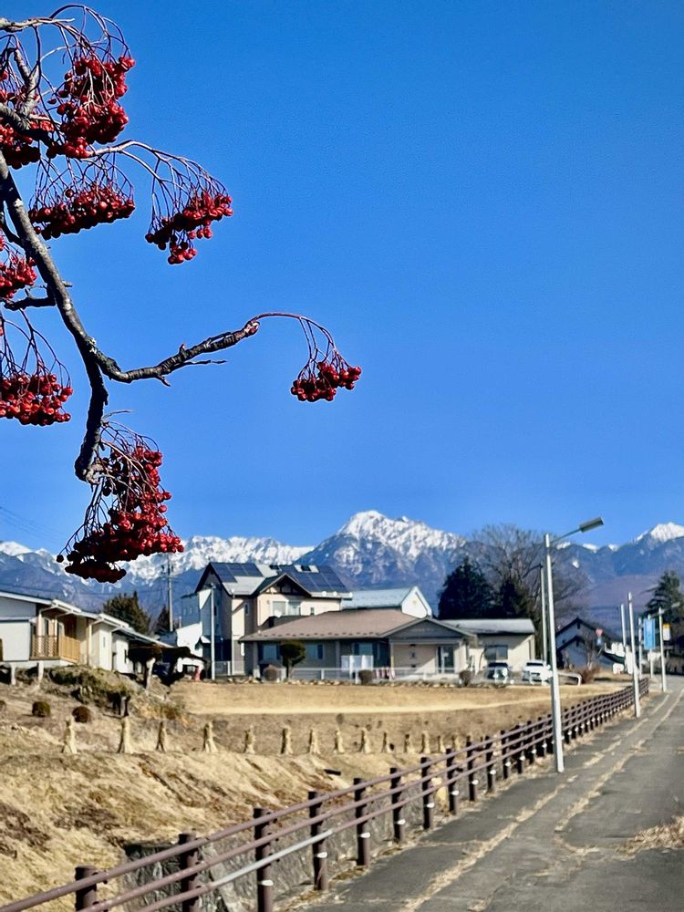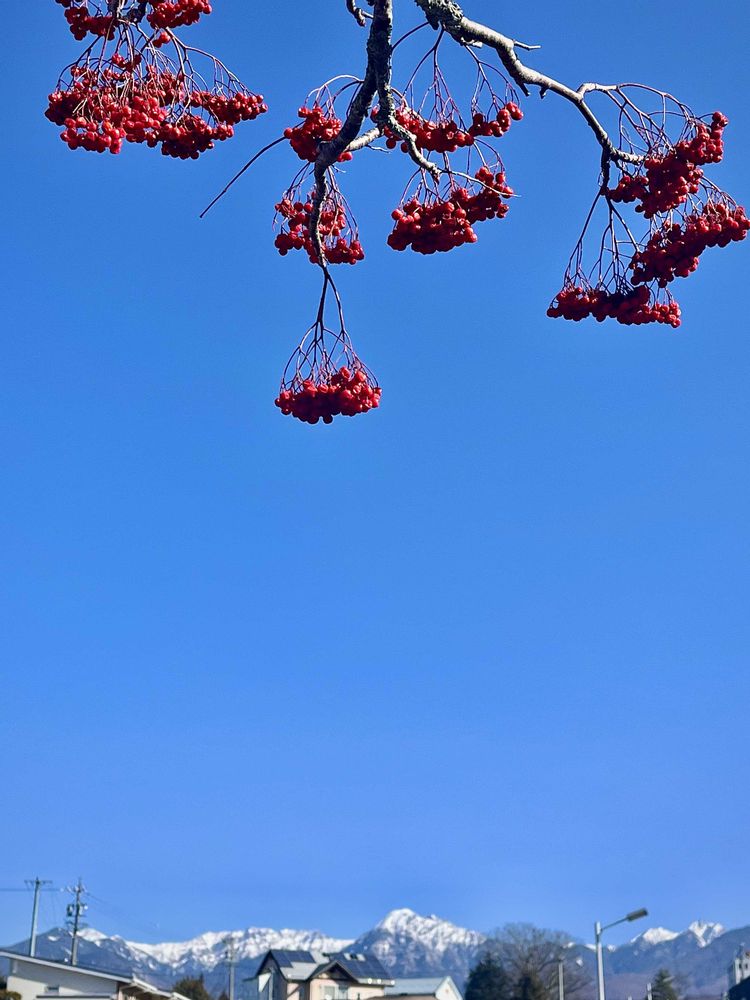 青空と八ヶ岳と真っ赤なナナカマド❤️