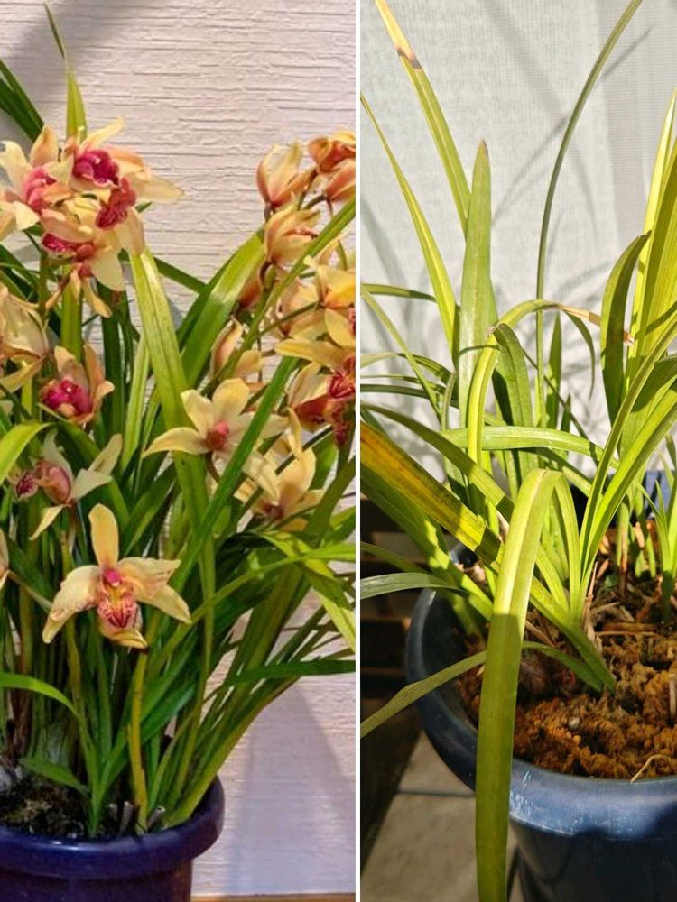 4枚め⬅️は2023年2月に別の方に頂いたシンビジュウム。➡️はその今の姿😅。植え替え方法や管理、勉強📝してきました。