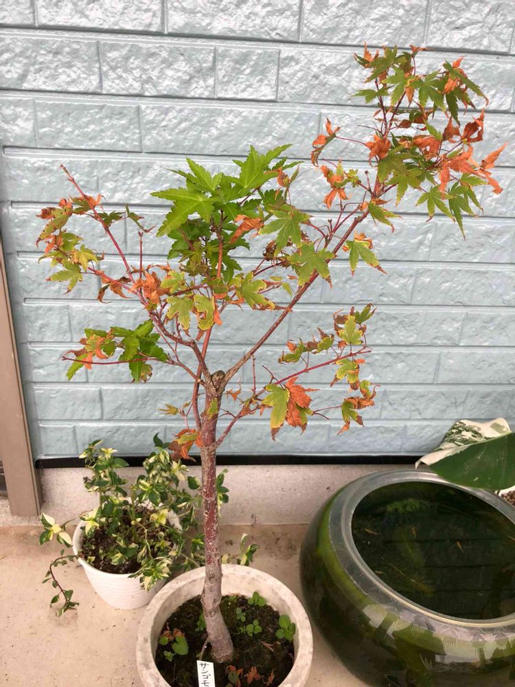 サンゴもみじです😊🎶かなりいい感じに緑が戻って来ました(^^♪真ん中ら辺は新芽が成長した所なんですが、あんな状態でも、復活するんですね❤️諦めなくて良かった(T ^ T)❣️少しだけど、紅葉を見れそうで嬉しい٩(ˊᗜˋ*)و