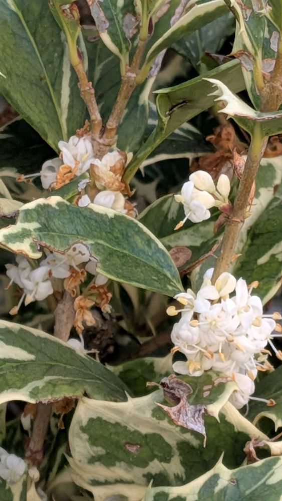 2️⃣斑入りのヒイラギの花もまだ少し咲いてます。