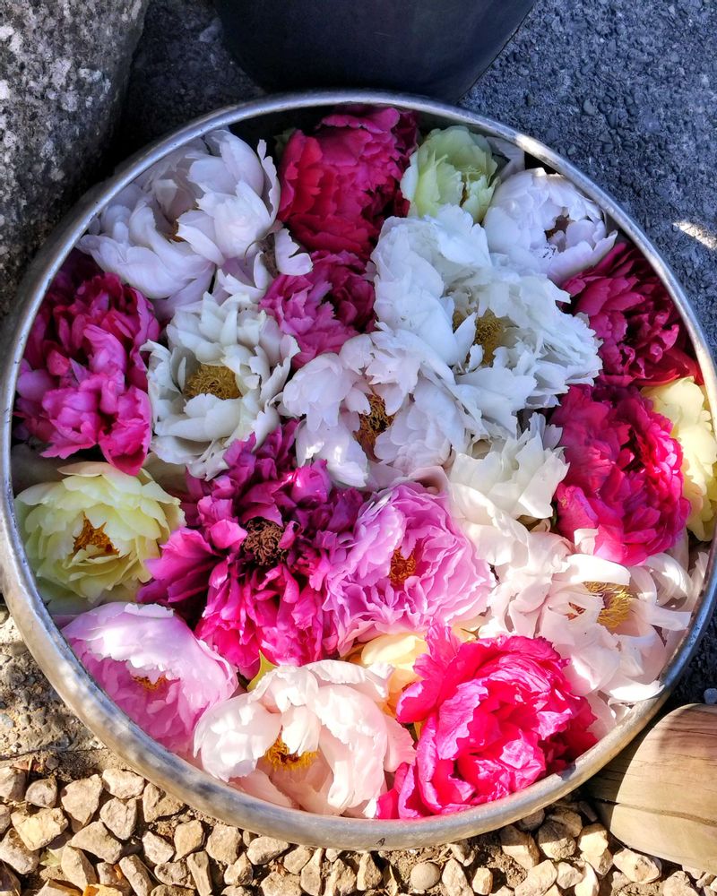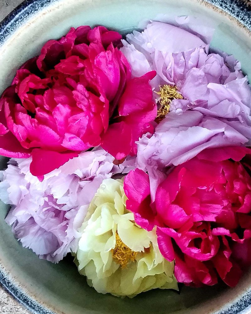3️⃣沢山の冬牡丹が入ったカラフルな花手水。大きな器で綺麗でした✨🤍❤️💛🩷💗