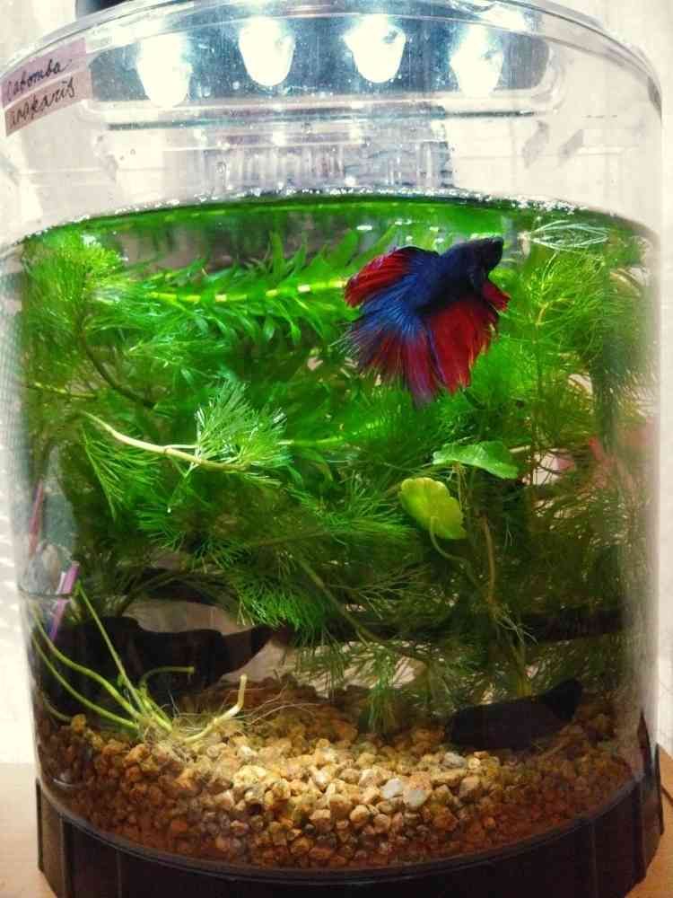 うちのベタ水槽は、ウォーターマッシュルームとカホンバ、アナカリス、マツモがいます。そのうちマリモもお迎えしたい。