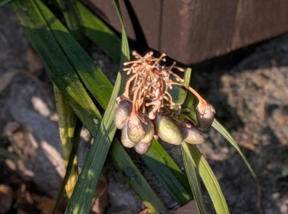デッキの足元の熨斗蘭の緑だった実の色が