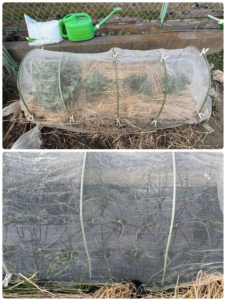 寒さ対策に余っていた藁をマフラーの様に敷き詰めました🧣