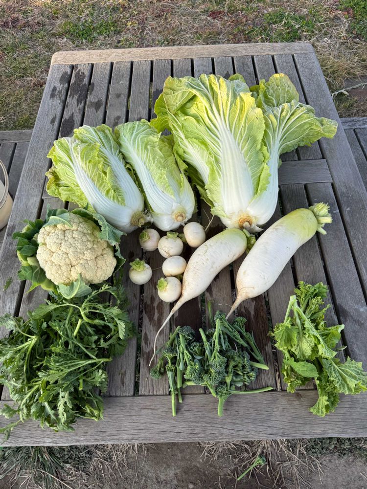 白菜は葉っぱを巻きつけて縛っておけば大丈夫ですよ。あ、でも寒さよりカラカラ天気で水不足で干からび枯れのパターンもあるかも💦