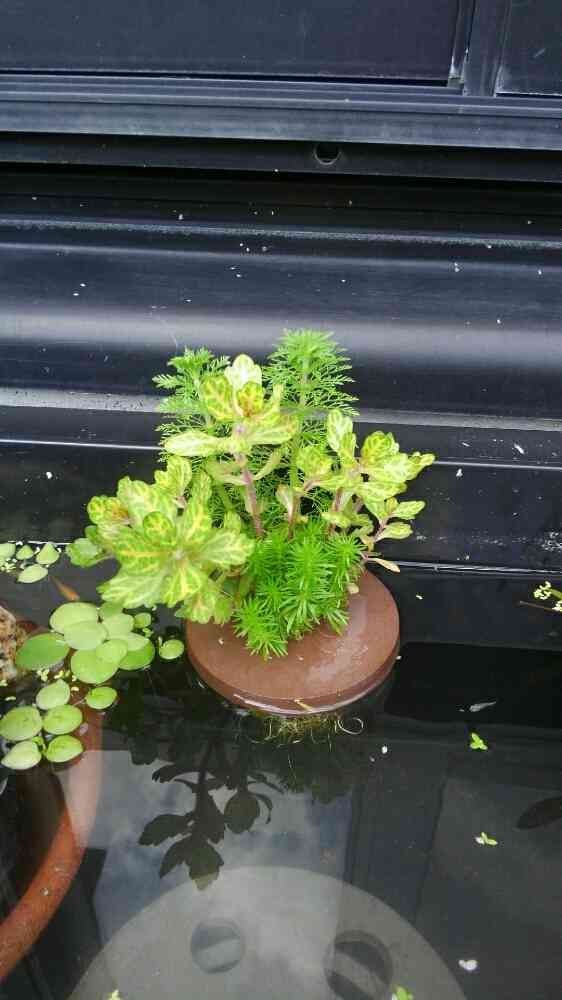 杜若園芸で購入した、ドーナツ型の浮きに水草を差し込んで浮かせています。