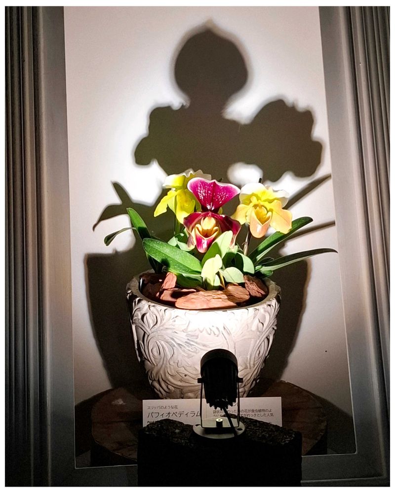 ライトアップされたお花もその影も