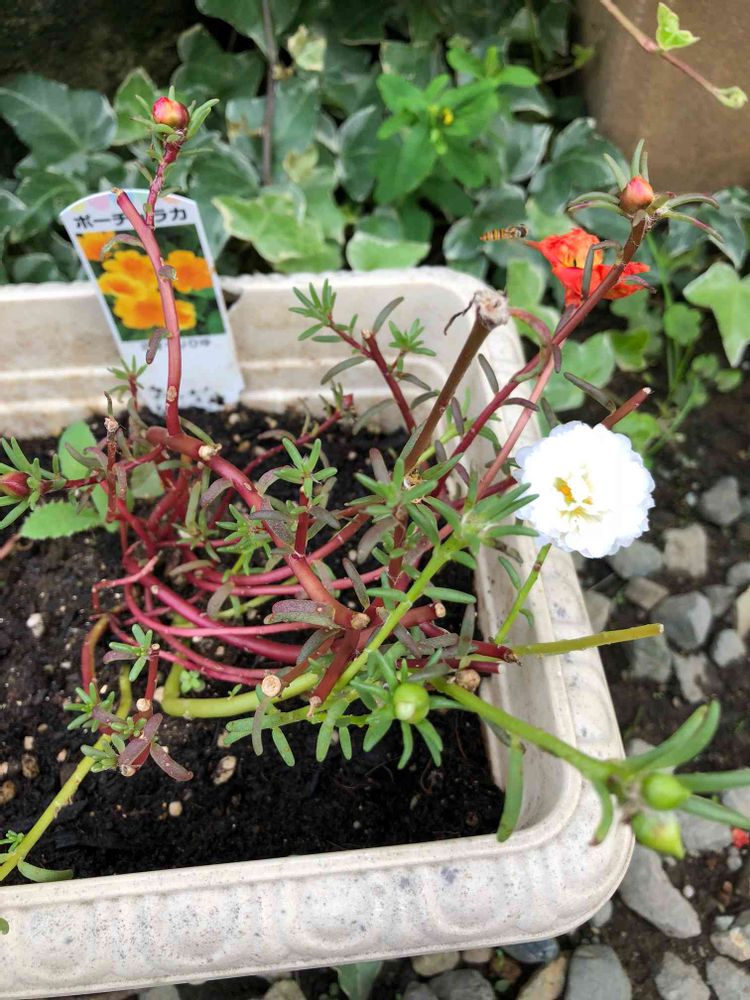 ポットに白と赤?2種類が咲いててお得でした。こちらもポーチュラカ?違う様な感じします。よろしくお願いします(´∀`)