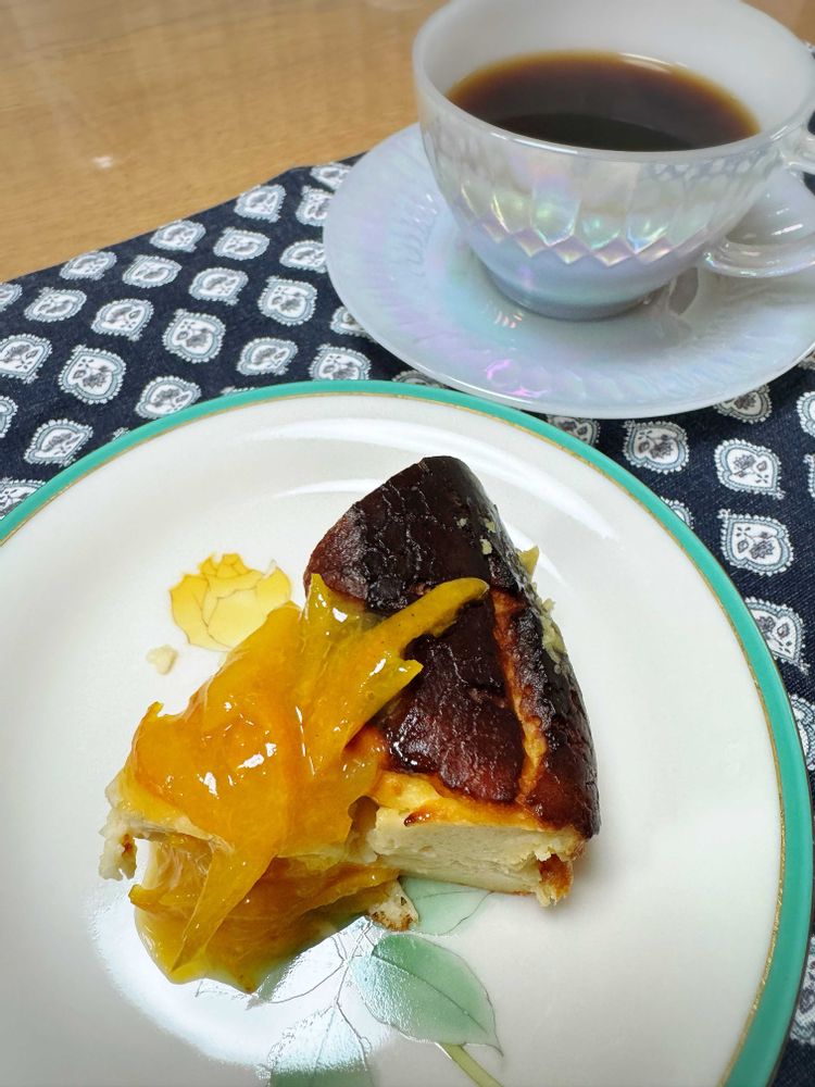 今日のおやつはヨーグルトで作ったバスクチーズケーキ🍰