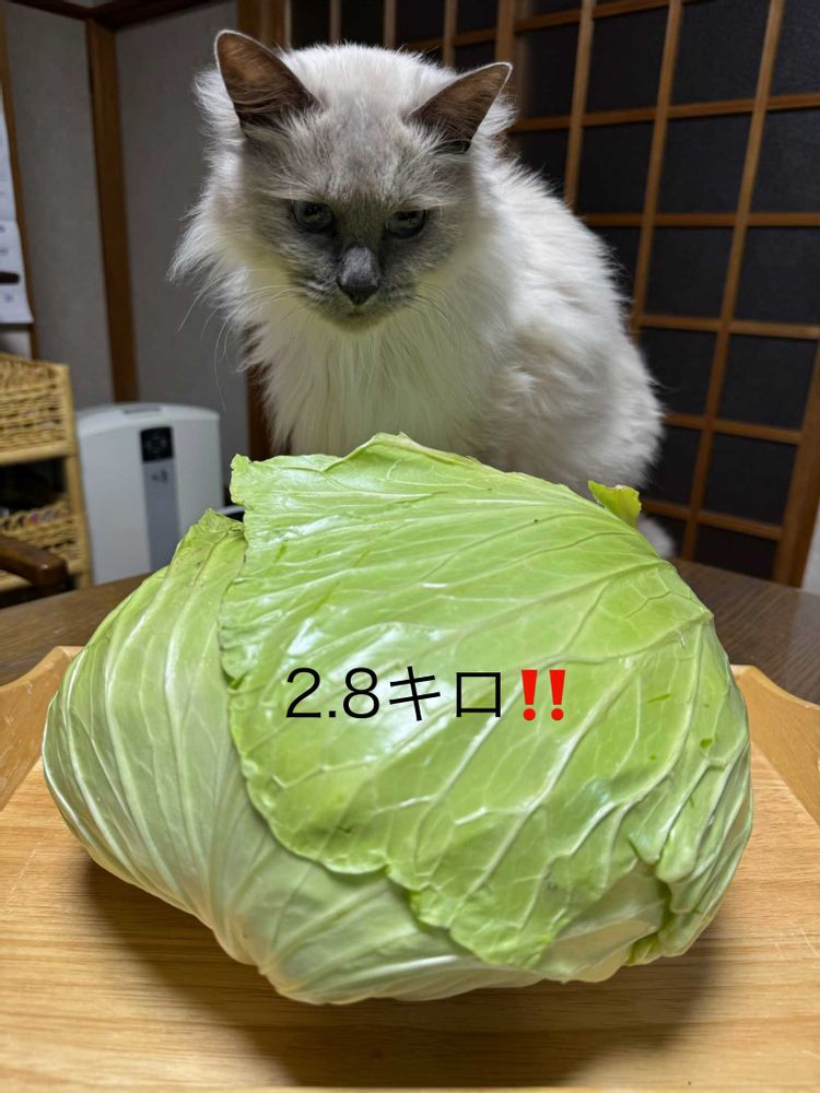 1枚目・ご近所さんから立派なキャベツを頂きました。計ってみるとなんと2.8キロ‼️