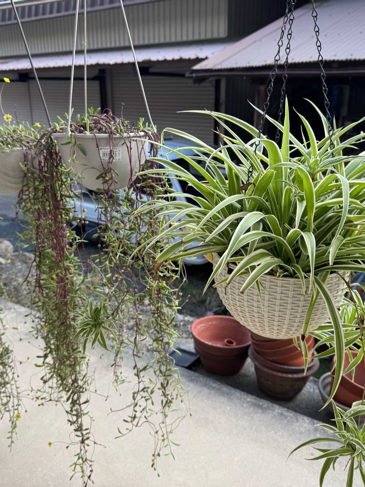 吊り鉢達今年はビニールもかけず、小屋で頑張ってくれています。たまに日向ぼっこして元気にしてくれています😊