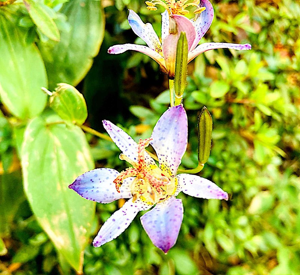 花びらのポツポツとした紫色の斑点が、鳥の「ホトトギス」の胸にある模様に似ていることから、この花名を冠したのだとか🦜💓