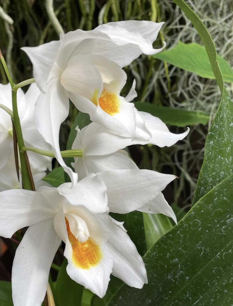 温室に咲く蘭をみせていただきながら お茶🍵しています