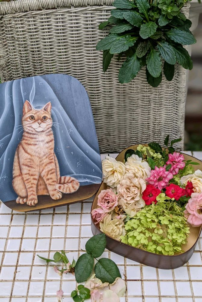 ① ちょっとまた模様替えをAfter ② Before ③ 錆び付いたアイアンフェンスの錆落とし落 これが以外と大変 ④ スプレーで塗装してお色直し ⑤ 🏷️ニャンニャン祭り 参加させていただきますね mamaがトールベイトで描いたニャンコ