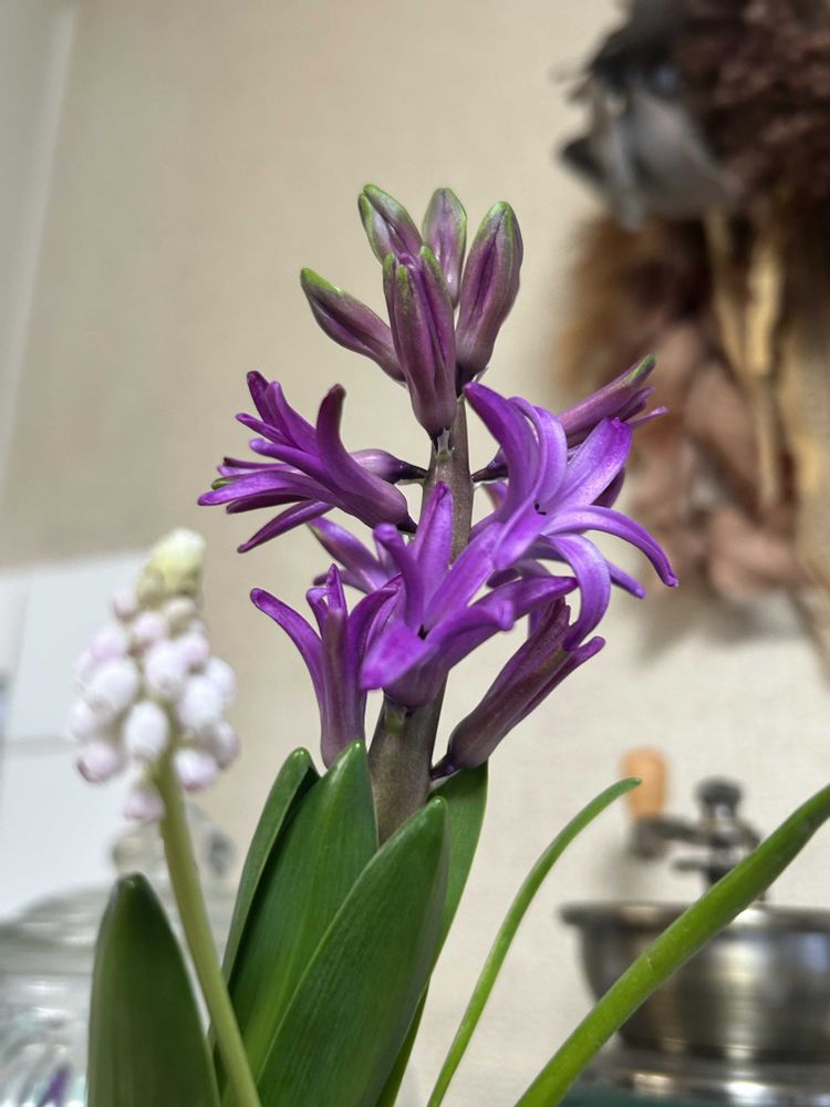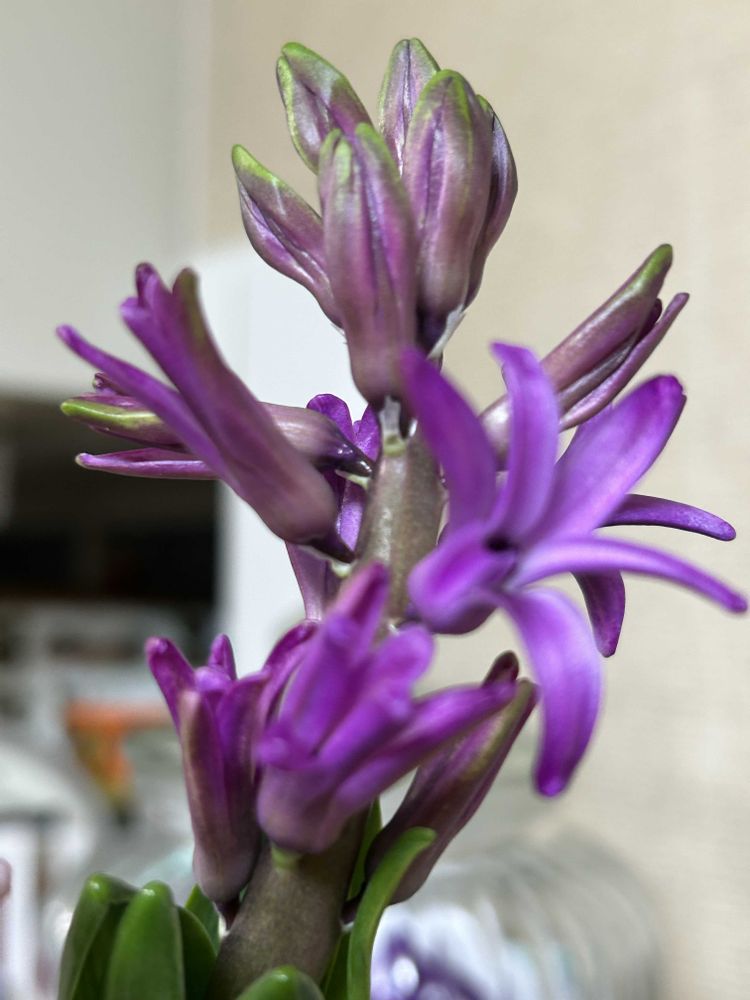 ヒヤシンス🪻少しずつ開いて来ました💜レモン🍋の木も部屋に入ってからどんどん蕾が出て来ました