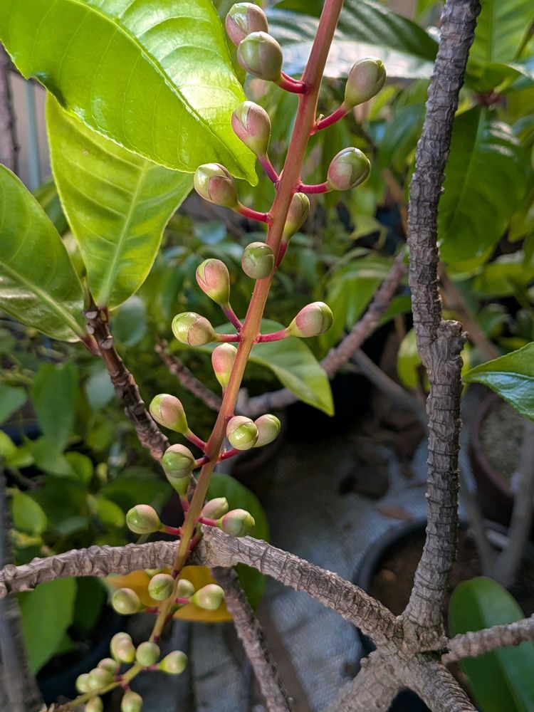 おはようございます。サガリバナですが思ったより動いて来るのが早く蕾が開いて来ています。そして今朝の横浜の外気温は0℃でしたが、この室内は18℃以上もありまるで春のような暖かさでおまけに夜は加湿器を炊いて湿度を上げており今ならまだ光が窓から入るので快適な環境ですね。ちなみに沖縄で寒緋桜が満開になる頃こちらではサガリバナ祭りが出来るかも知れませんね!