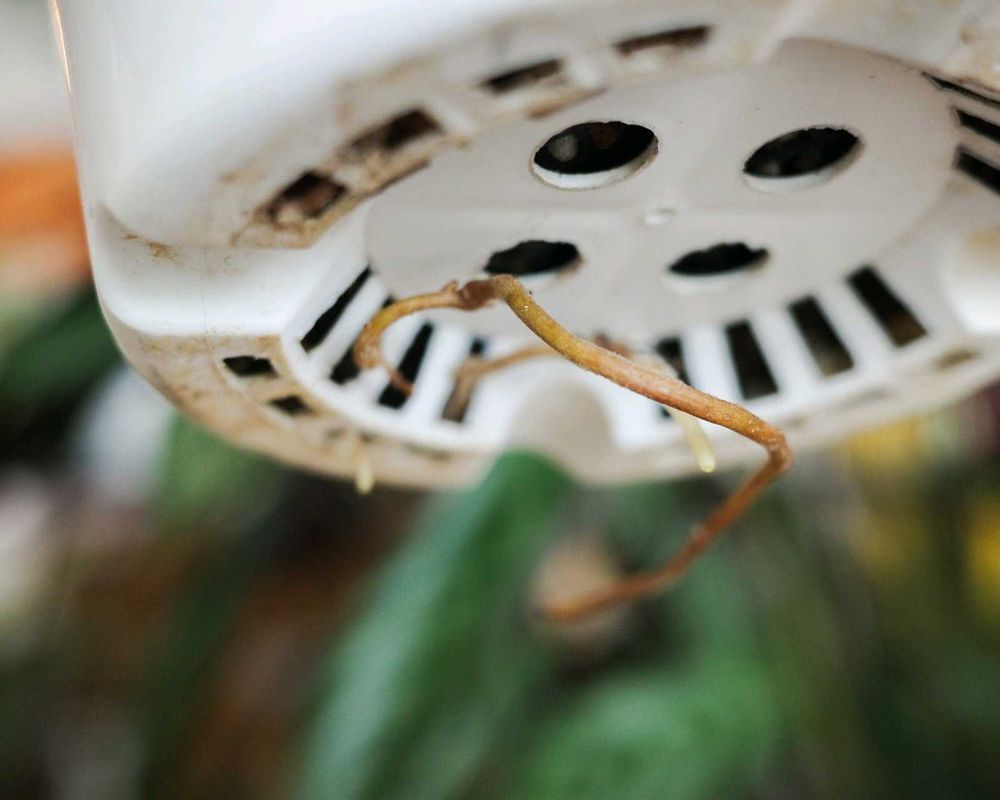 まだ土に植えて半年も経ってないから根詰まりにはなってないと思うんですけど、根がはみ出てきてますねぇ、水耕の時の根が水に浸かりたくて出てきたのかしら🤔