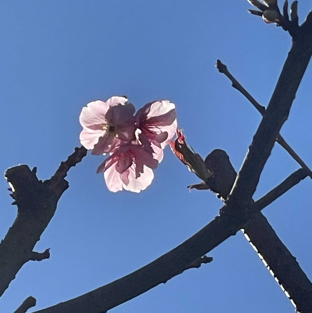 庭を見ると河津桜が咲いてました😊