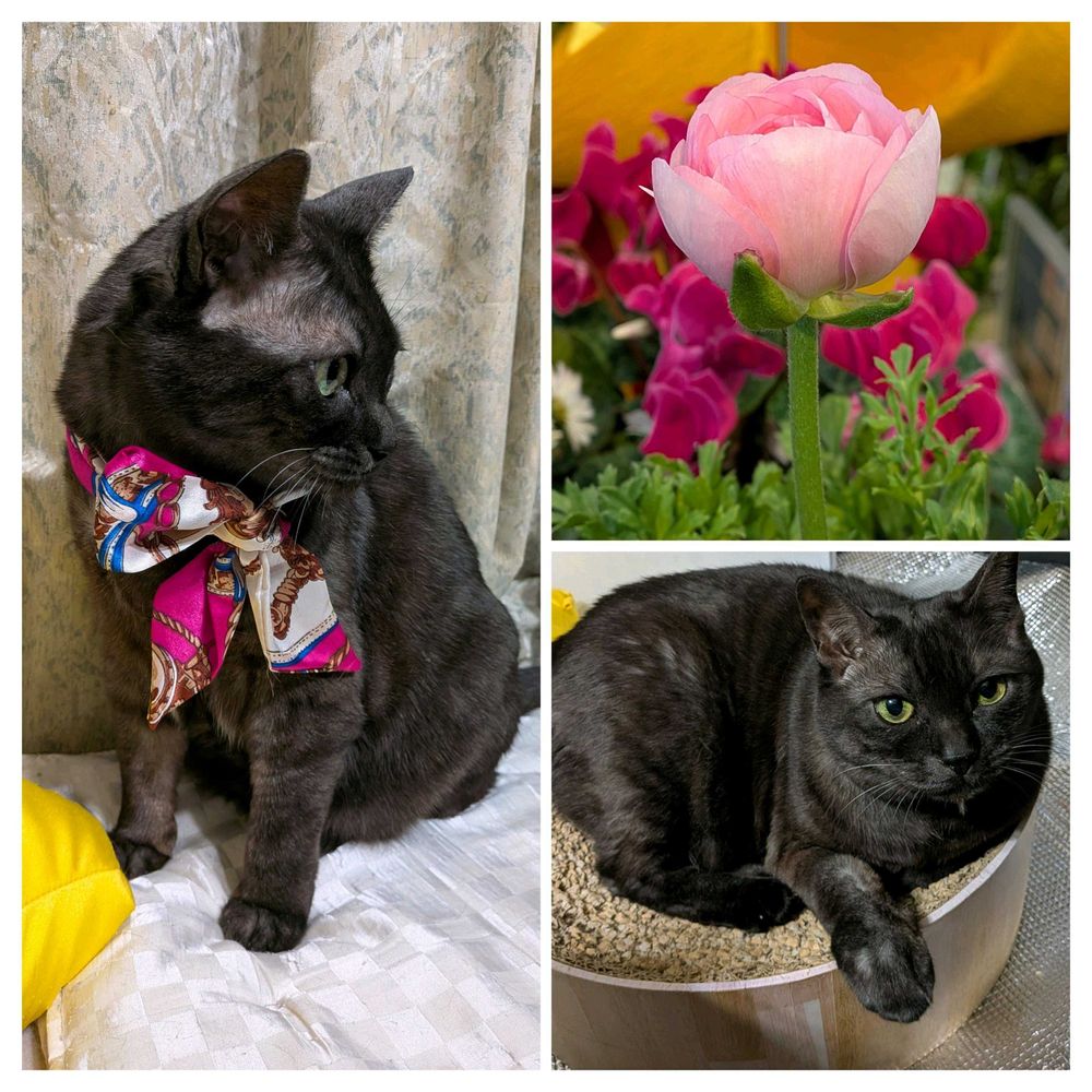 2️⃣ノワール♀9歳🧣とラナンキュラス🩷🌿