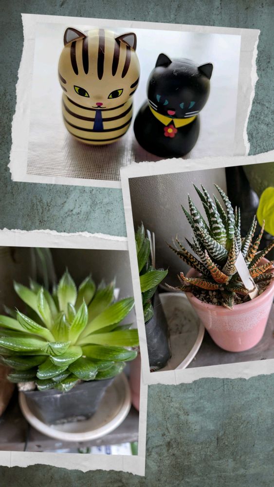 1️⃣多肉植物のハオルチア櫻水晶&十二の巻&孫の猫ちゃんハンコ🥰