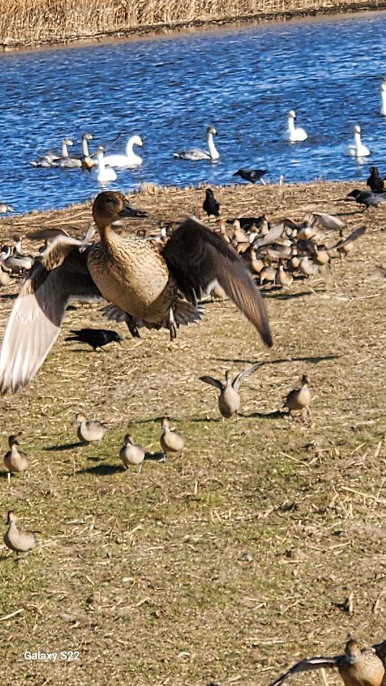 カモが揺れるハクチョウも揺れる春の静けさ‼️