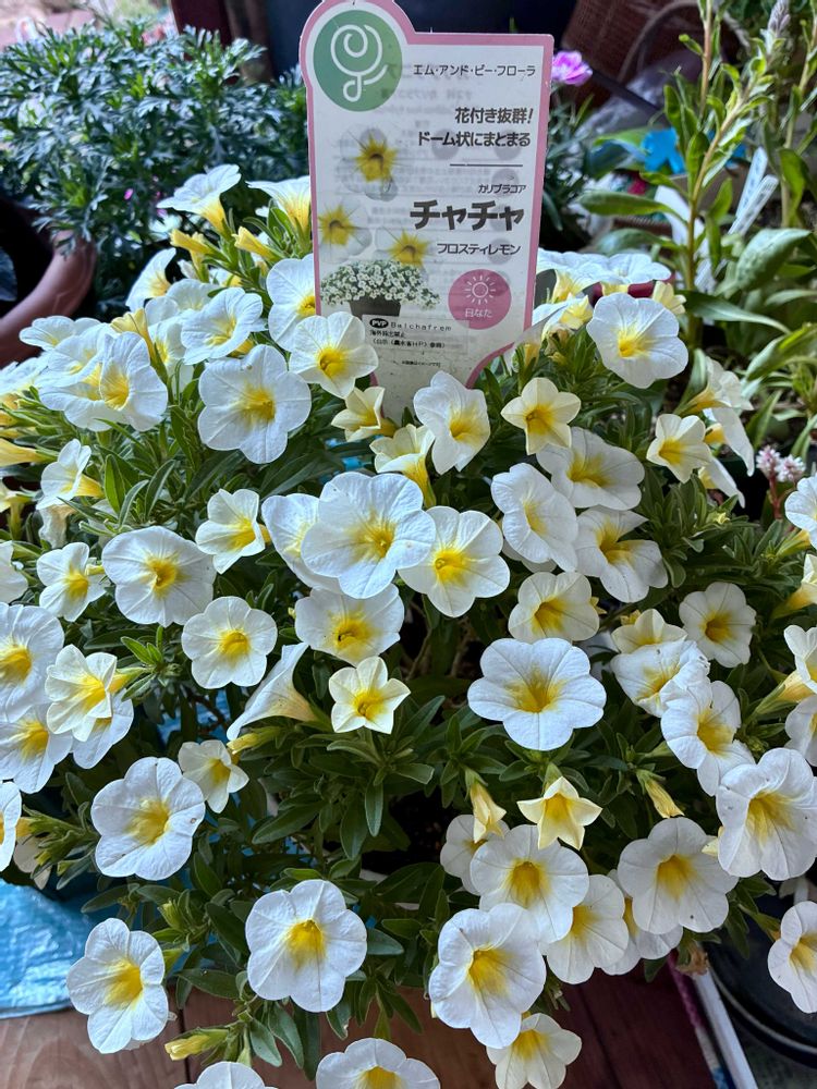 チャチャ、良いですね〜かわいい😍我が家もバニラカラーのカリブラさんがいますが、こんなに咲いてないです…💦