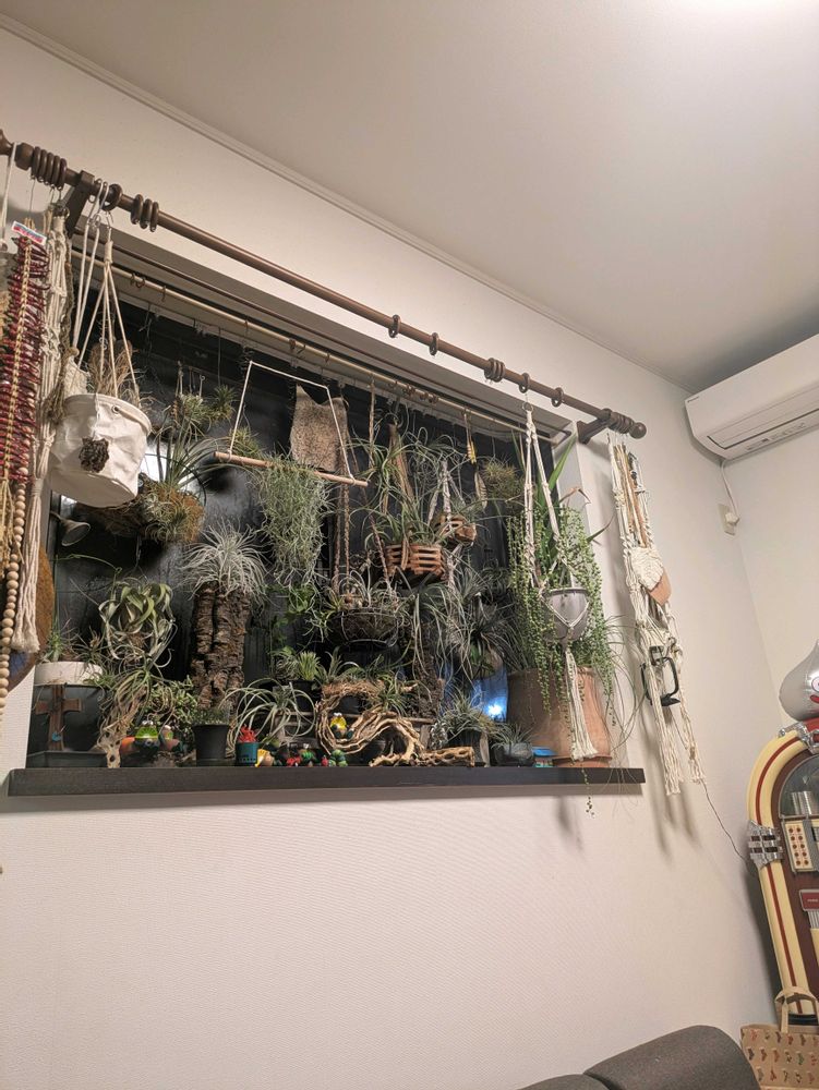 リビングのインテリアとして、狭い出窓辺緑化はチランジア最適なんてしながら育てられています。原酒が好きです。(原種)しかーし、自然交配種はいたりします。106株、チランジア100種、その他鉢植え6種です。(20240926) リビングで自然光と風(サーキュレーター)でやっています。