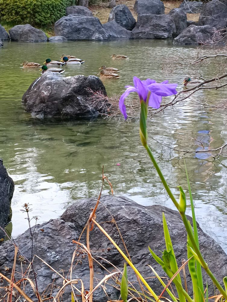 カキツバタは本来は初夏の花だよね⁉️冬鳥のマガモと写っているって不思議🤔